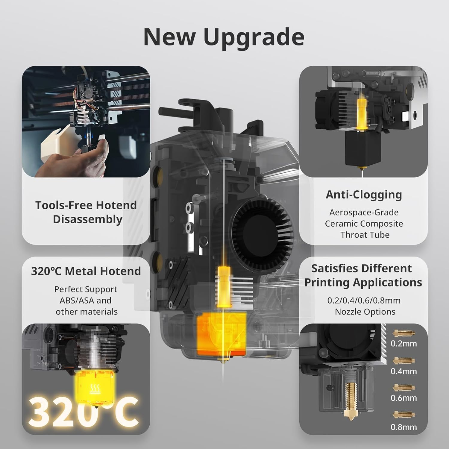 【Master of Mainstream Filament】Kobra S1 printer features a full metal hotend capable of reaching a peak temperature of 320℃. Its hotbed can consistently maintain a maximum temperature of 120℃, matching a variety of filaments: PLA, TPU, ASA, ABS, PETG. Multiple nozzle sizes (0.2, 0.4, 0.6, 0.8mm)